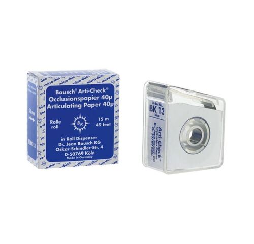Bausch 40µ mikrotunna artikulerande papper är extremt tunna och rivbeständiga och är belagda med flytande färger på båda sidor. Dessa papper markerar just på grund av det tunna materialet; falska eller smetade kontakter kan därmed undvikas. Den speciella beläggningen med flytande färger underlättar noggrann märkning av alla ocklusala kontakter eller ocklusala störningar. Fuktiga ocklusala ytor som guld, keramik, polerad metall eller akryl, som är svåra att undersöka, utgör inga problem.