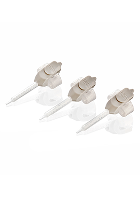 Grå regular blandningsspetsar för FujiCEM Evolve cement i automixsprutor.