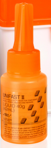 Självhärdande akrylat för temporära inlägg, kronor, broar och reparationer. Genom utvecklingen av den nya SURF teknologin har GC inte bara övervunnit begränsningar vad gäller estestik utan också skapat ett resin som är resistent mot missfärgningar. Tack vare SURF teknologin är för första gången de polymera partiklarna täckta med ett pigment. Detta hjälper till att jämt distribuera de polymera partiklarna och pigmentet vilket i sin tur garanterar en blåsfri och exceptionellt jämt färgade ersättningar. UNIFAST III garanterar långtidstemporära ersättningar med jämn färg. Detta kombinerat med dess överlägsna fysikaliska egenskaper för långtidstemporära ersättningar i samband med implantatterapi.