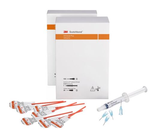 Scotchbond Universal Plus Adhesive är det första radiopaka universala adhesivet, minimerar risken för feldiagnos vid röntgen och överbehandling invasivt. Det ger en stark bindning till alla fyllningsmaterial, glaskeramer utan behov av extra primer, silan eller aktivator. Det supporterar minimal adhesiv tandvård genom att bonda och försegla karies infekterat dentin. BPA free såsom BisGMA. I stort sett ingen post-op känslighet. Tillsammans med 3M RelyX Universal Resin Cement har vi ett fullständigt system , erbjuder utmärkt bindningsstyrka till i stort sett alla indikationer för dualhärdande resincement.
