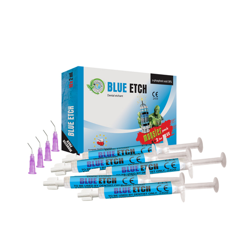 BLUE ETCH är en högkvalitativ etsgel baserat på 36% ortofosforsyra. Gelen har perfekt konsistens och tixotropa egenskaper, vilket gör att den blir flytande vid applicering men stelnar direkt på ytan – den rinner därmed inte från emaljkanten. Produkten har utmärkt vidhäftning, är lätt att skölja bort och den blå färgen ger hög precision och kontroll vid applicering.