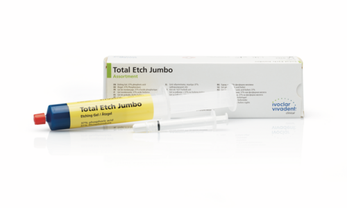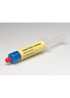 Blå tixotrop 37% fosforsyra i gelform i spruta och med vinklad kanyl.