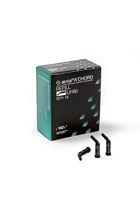 Estetisk ljushärdande universalkomposit med ett förenklat färgsystem i en egen utvecklad filler- och silan teknologi, mjuk och formbar. Består av 5 st grundfärger som uppnår estetiken i 16 klassiska VITA-färger, som täcker hela 90 % av restaurationerna. Genom att använda olika brytningsindex integreras G-aenial A'chord naturligt i tandstrukturen. Har en naturlig fluorescence. Radiopak. Färg: A2 (A2, B2, C1, D3).