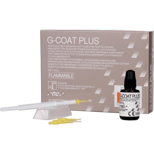 Ljushärdande nanofylld varnish (skyddslack). Används för att stärka glasjonomerfyllningar och förbättra dess mekaniska egenskaper. Dessutom ger den en högglansig och estetisk ytstruktur. G-Coat Plus har en stelningstid på 20 sekunder.