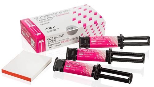 Trippelpack Handmix. 3 x GC FujiCEM Evolve spruta (9.2 g / 5.0 ml) 1 x blandningsblock #22.