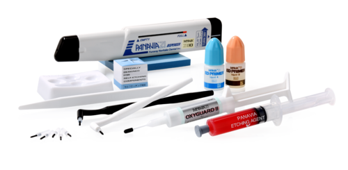 Förpackning: PANAVIA 21 Paste, ED PRIMER, OXYGUARD II, PANAVIA ETCHING AGENT V och tillbehör