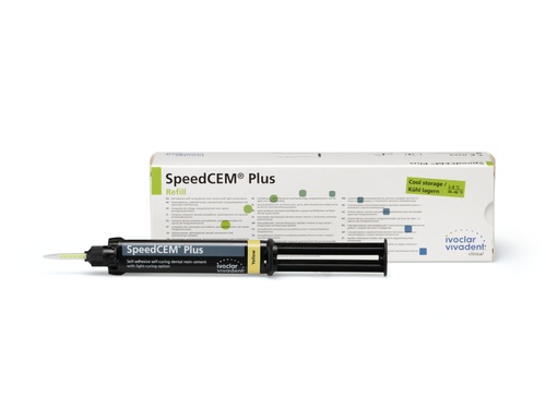 SpeedCem Plus är ett självbondande, självhärdande kompositcement med möjlighet till ljushärdning. Används till restaurationer framställda av zirconia, metallkeramik samt för cementering av restaurationer på implantatdistanser. Hög röntgenkontrast