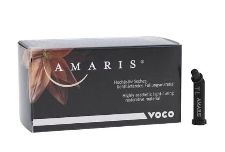 VOCO Amaris är ett högestetiskt, ljushärdande fyllnadsmaterial för direkta restaureringar, utvecklat för att göra färgval och lagerläggning mer intuitiv – med fokus på naturliga färgövergångar och ett diskret "kameleont"-resultat.