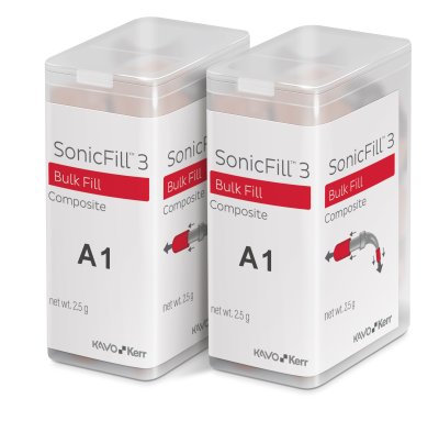 Ljushärdande bulk-fill material av nanohybridkomposit som enkelt appliceras direkt i kaviteten med Sonicfill handstycke (KaVO multiflex koppling). Den soniska effekten reducerar kompositens viskositet och gör den flytande. Omedelbart efter applicering återgår kompositen till sin ursprunglig konsistens och kan formas utan att klibba fast till instrumentet. Låg krympning, kan fyllas och härdas i ett skikt upp till 5 mm. Färg: A1