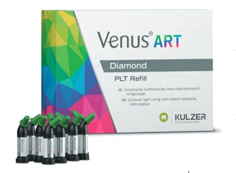 Universal röntgenkontrasterande nanohybridkomposit för restaurationer i Klass I-V kaviteter. Baserad på ny monomer vilken ger materialet en låg krympning. Finns i 27 färger. Venus Diamond PLT CO1x10x0,25 g