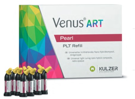 Universal röntgenkontrasterande nanohybridkomposit för restaurationer i Klass I-V kaviteter. Baserad på ny monomer vilken ger materialet en låg krympning. Finns i 27 färger och tre translucenser. Venus Pearl PLT OLC1x10x0,2 g