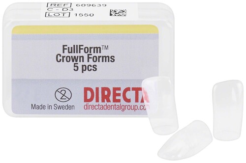 Transparenta kronformar av stark, laminerad plast. Finns med F-, OP- och C-kodning.
