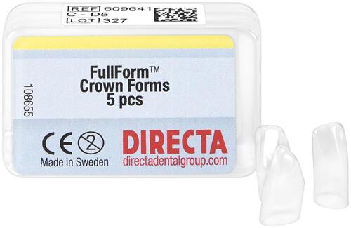 Transparenta kronformar av stark, laminerad plast. Finns med F-, OP- och C-kodning.