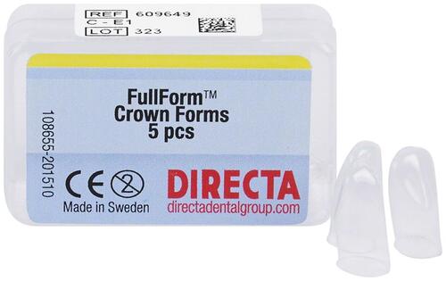 Transparenta kronformar av stark, laminerad plast. Finns med F-, OP- och C-kodning.