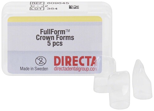 Transparenta kronformar av stark, laminerad plast. Finns med F-, OP- och C-kodning.