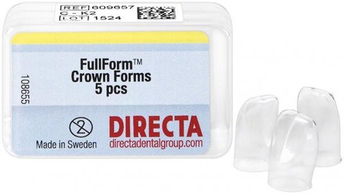 Transparenta kronformar av stark, laminerad plast. Finns med F-, OP- och C-kodning.
