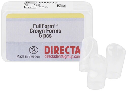 Transparenta kronformar av stark, laminerad plast. Finns med F-, OP- och C-kodning.
