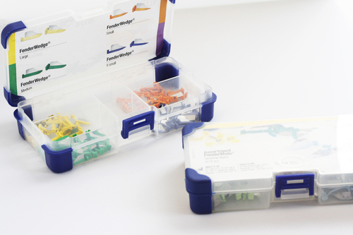Separerkilar i plast med vinge av rostfritt stål som skyddar granntanden under preparation.