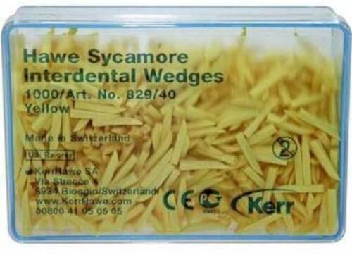 Sycamore träkilar har rundad spets och triangulära sidor som anpassar sig efter formen mellan tänderna. Storlek 829/40, Gula.