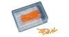 Färgkodade anatomiskt utformade interdentalkilar av sycamore trä. De konkava sidorna anpassar sig till den interdentala konturen. Den kvadratiska änden möjliggör enkel isättning av kilen och den uppåtvända spetsen förhindrar skador på papillerna. Orange, 13 mm, xxx-fin.