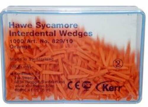 Sycamore träkilar har rundad spets och triangulära sidor som anpassar sig efter formen mellan tänderna. Storlek 829/10, orange.