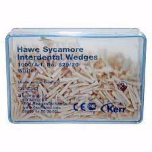 Sycamore träkilar har rundad spets och triangulära sidor som anpassar sig efter formen mellan tänderna. Storlek 829/20, vita.