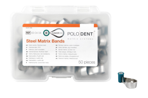 Dubbelkonturerade anatomiskt formade matrisband, vinklade för enkel anpassning. Stabila och konstruerade för att förhindra glidning. Rostfritt stål.