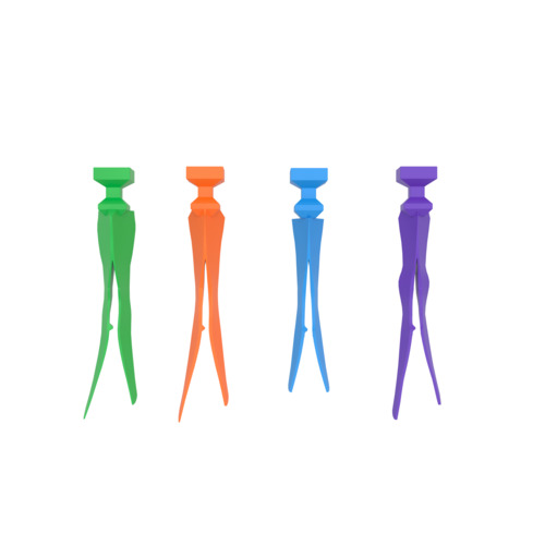Quad-kilar finns i tre olika storlekar: S/blå, M/orange och L/grön, samt en speciell anatomiskt formad kil (lila) utformad för att förbättra tätningen vid roten av en konkav tand.