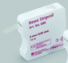 Polyesterstrips på rulle för alla anteriora fyllningsmaterial. 0,05mm tunna, 8 mm breda, 15m/rulle