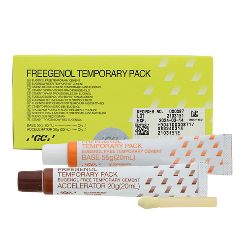 Eugenolfritt cement för fastsättning av temporära kronor och broar. Produkten kan också användas för temporär fastsättning av slutgiltiga protetiska ersättningar.