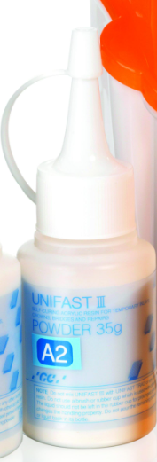 Självhärdande akrylat för temporära inlägg, kronor, broar och reparationer. UNIFAST III pulver är extremt lätt att blanda med vätska, vilket ger en mix som inte klibbar. Med en bekväm konsistens att arbeta med och en snabb stelningstid som förbättrar hanteringsegenskaperna drastiskt.