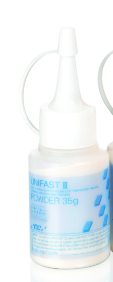 Självhärdande akrylat för temporära inlägg, kronor, broar och reparationer. UNIFAST III pulver är extremt lätt att blanda med vätska, vilket ger en mix som inte klibbar. Med en bekväm konsistens att arbeta med och en snabb stelningstid som förbättrar hanteringsegenskaperna drastiskt.
