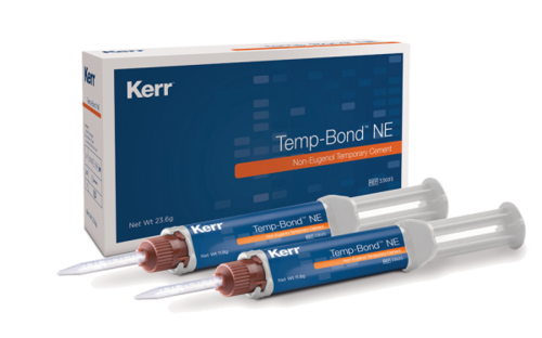 Det eugenolfria temporära cementet hämmar inte polymerisationen av permanenta hartscement och akryltemporära cement.