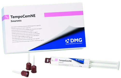 Temporärt cement för cementering av provisoriska ersättningar samt vid inprovning av permanenta arbeten. Levereras i praktisk Smartmixspruta, ingen separat blandning krävs.