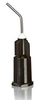 Vinklad, förböjd, smal och tunn spets för exakt applicering, avsedd för Ultra- Blend Plus, EtchArrest. Luer-Lock