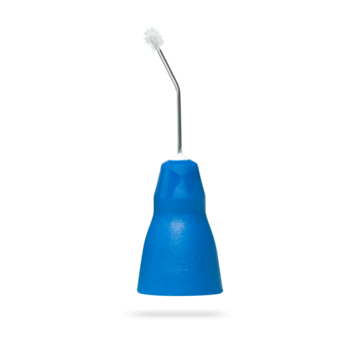 Blå flockad appliceringskanyl med snap-on fattning speciellt utformad