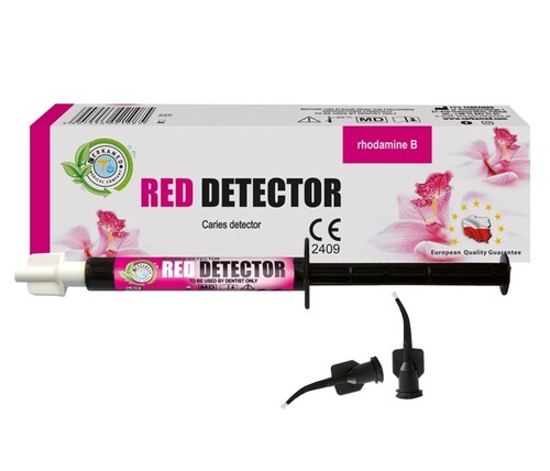 Cerkamed RED DETECTOR är en kariesindikator utvecklad för att lokalisera kariesangrepp i dentinet genom färgmarkering, så att borttagning av kariöst vävnad kan utföras mer kontrollerat och med bättre bevarande av frisk tandsubstans.