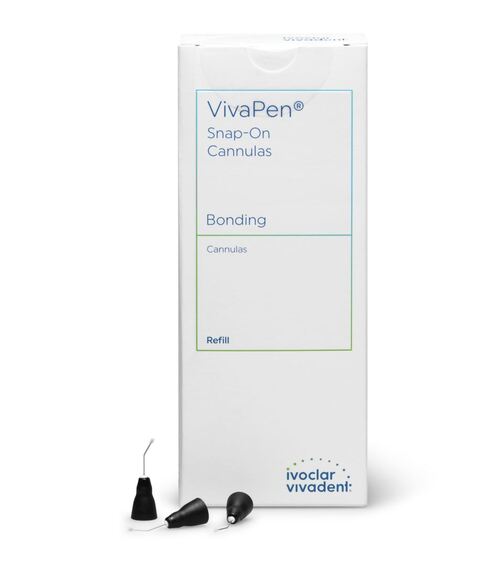 Förböjd specialdesignad snap-on kanyl med borst för Adhese Universal VivaPen. Ø 0.5mm.
