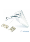 Clipon, plastclips som enkelt fästs på glasögonskalmarna för att sedan fästa plastvisir i. Justeras lätt till önskat höjd/bredd av visiret.