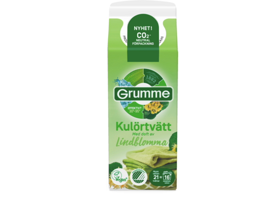 Grumme Flytande Kulörtvätt Lindblomma är Svanenmärkt och veganmärkt. Tvättmedlet är dessutom effektivt redan vid 30 grader.