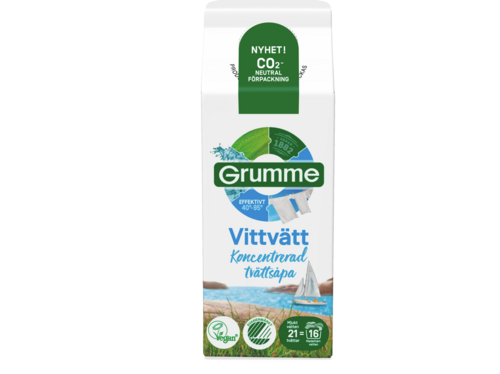Grumme Flytande Vittvätt är ett tvättmedel speciellt framtagen för vita eller ljusa plagg och textilier. Tvättmedlet innehåller effektiva enzymer som på ett naturligt sätt bekämpar fläckar. Det innehåller dessutom ingredienser som binder upp lösa pigment i tvättvattnet och därmed förhindrar att det färgar av sig på tvätten.
