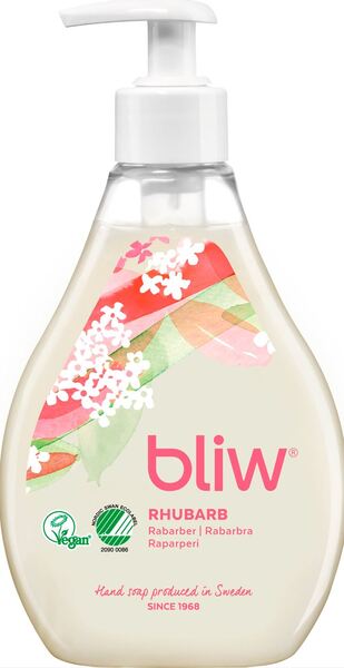 Bliw Rabarber är en mild, återfuktande pumptvål med en frisk och söt doft av rabarber. Tillverkad i Sverige, dermatologiskt testad