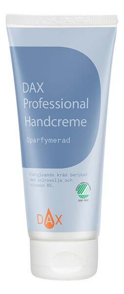 DAX Professional Handcreme är skapad med miljön så väl som människan i fokus och är en lätt handcreme som ger snabb återfuktning under arbetsdagen. Krämen är berikad med solrosolja och panthenol/vitamin B5 som hjälper till att återuppbygga hudens naturliga barriär. Fetthalt ca 18%. Miljömärkt med Svanen och allergimärkt med Allergy Certified.