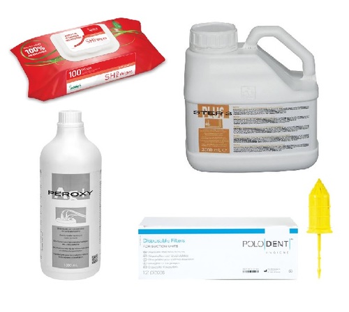Innehåller: Cefla Ster 3 Plus 3 liter Peroxy AG+ 1 liter Cefla sugfilter kit, 8 st Dentasept SH PRO Wipes, 6 x 100 st