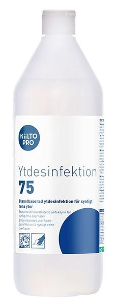 Kiilto Pro Ytdesinfektion 75 är avsedd för desinfektion av synligt rena ytor t.ex. bänkar, bord och undersökningsbritsar. Effektiv mot bakterier, svampar och olika typer av virus som HIV, Hepatit B och C.