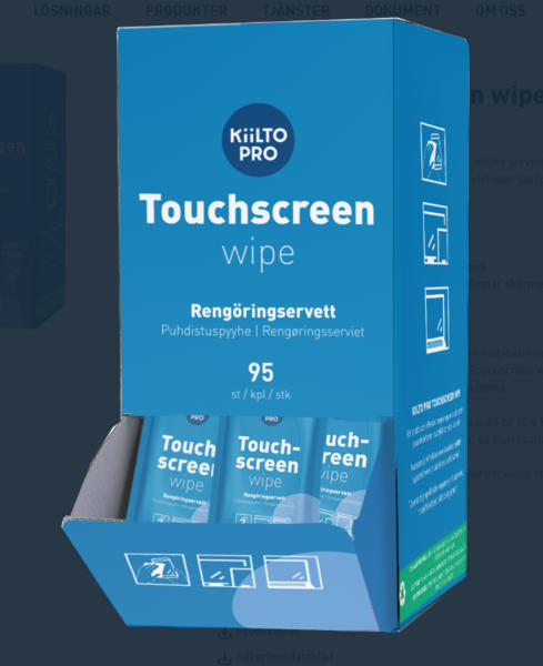 Mjuk rengöringsservett för pekskärmar på mobiltelefoner, surfplattor, bärbara datorer och andra liknande elektroniska enheter. Tillverkad av luddfri cellulosafiber, fuktad med 5-15% Propan-2-ol.