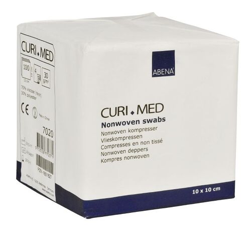 Mjuka släta 4-lagers osterila non-woven kompresser med hög absorptionsförmåga. Har många användningsområden: för avtorkning och desinfektion, som absorberande tork vid extraktion. Tillverkad av 70% viskos och 30% polyester. Färg: vit.