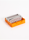 Oranget filställ av autoklaverbar plast för 13 st filar. Låsbart så att filarna hålls på plats vid rengöring. Filstället kan användas i Practipal brickorna eller fristående. Ej för 31 mm filar.