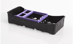 Stabil bricka med antiglid, bygel för fastlåsning av instrumenten. Stapelbar. För 5 instrument.