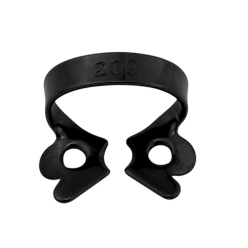 Black coated: Den svarta beläggningen på kofferdamklammern minskar bländning och förbättrar synligheten under behandlingen.